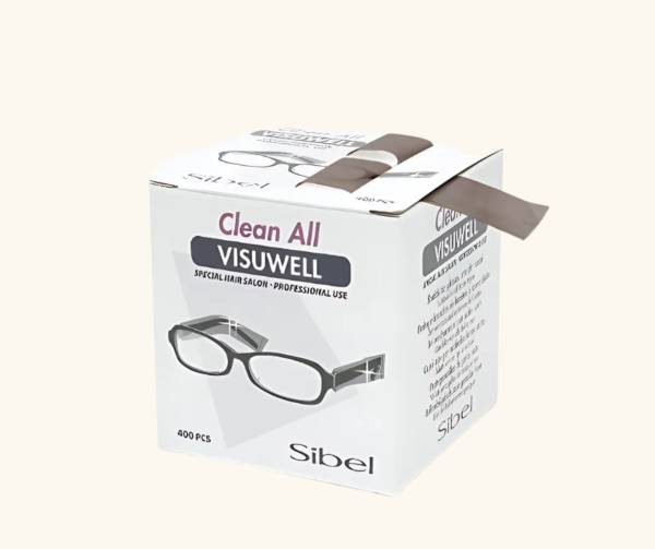 VISUWELL est un système de protection oculaire conçu pour les salons de coiffure. Ce modèle noir en dévidoir contient 400 protège-lunettes jetables, parfaits pour les clients qui souhaitent lire pendant une coloration ou un traitement.